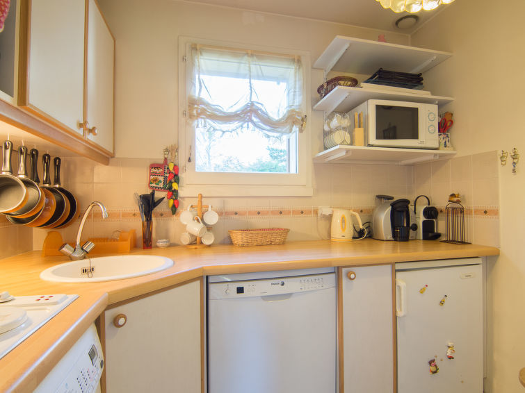 Huis in een rij 3-kamers 55 m2 op 2 verdiepingen. Hal. Woon-/eetkamer met open haard (alleen decoratie), TV (Flatscreen TV). Uitgang naar de tuin. Keuken (4-pits kookplaat, oven, afwasmachine, broodrooster, waterkoker, magnetron, elektrische koffiemachine). Aparte WC. Elektrische verwarming. Bovenverdieping: 1 kamer met 1 2-pers bed (1 x 180 cm, lengte 200 cm), TV (Flatscreen TV). 1 kamer met 1 2-pers bed (1 x 140 cm, lengte 190 cm), TV (Flatscreen TV). Douche/WC. Tuin, op het oosten gelegen en op het zuiden gelegen, gazon. Terrasmeubelen, ligstoelen. Ter beschikking: wasmachine, droger. Internet (Internet (WiFi), gratis). Parkeerplaats. Niet rokers woning. Rookmelders. 142200001493A