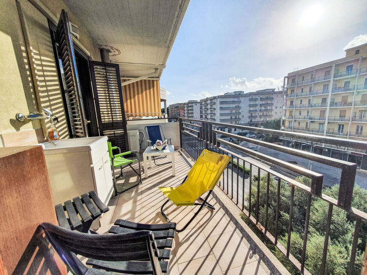 "Rosie Holiday", appartement 3-kamers 100 m2 op 2 verdiepingen op de 4e verdieping. Gedeeltelijk afgeschuinde daken, comfortabel en gezellig ingericht: woon-/eetkamer met TV, air-conditioning en heteluchtverwarming. Uitgang naar het terras. 1 2-pers. kamer met air-conditioning. Uitgang naar het terras. Kookhoek (mini-oven, afwasmachine, 4 kookpitten (vlammen), broodrooster, waterkoker, elektrische koffiemachine). Douche/bidet/WC. Bovenverdieping: groot woon-/slaapkamer met afgeschuinde daken, hoogte van het plafond 120 - 280 cm met 1 2-pers bed, TV, air-conditioning en heteluchtverwarming. Uitgang naar het terras. Verwarming, heteluchtverwarming. Verwarming alleen beschikbaar van 01.12. tot 31.03. Parketvloeren. Terras 12 m2 gedeeltelijk overdekt terras 8 m2. Terrasmeubelen. Beperkt uitzicht in de verte op zee en de plaats. Ter beschikking: wasmachine, kluis, strijkijzer, kinderbed tot 2 jaar (extra), haardroger. Internet(WiFi), gratis). Parkeerplaats (omheind, 2 Auto's). Rookvrij huis. Rookmelders, brandblusser. IT089017C2CZ8J9TT9