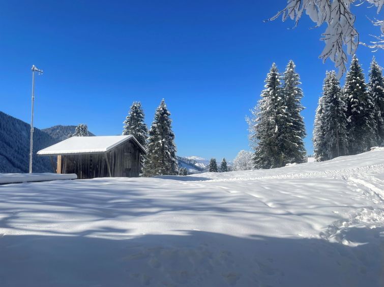 Kindvriendelijke, comfortabele cottage "Runnimoos", gerenoveerd in 2013. Rustige, zonnige ligging tegen een helling, te midden van groen. Voor alleengebruik: terrein, mooie tuin ter ontspanning. Patio, terras, barbecue, stookplaats. In het huis: salon, Internet (WiFi), biljart, speelkamer, tafelvoetbal, centrale verwarming, droogruimte. Smalle toegangsweg tot aan het huis. 's winters 4x4 aanbevolen. Parkeerplaats bij het huis. Levensmiddelenwinkel 1.6 km, restaurant, bushalte 400 m, openluchtzwembad 12 km. Midgetgolf 400 m, wandelroutes 1 m vanaf het huis, stoeltjeslift, skiverhuur, skischool, rodelbaan, kinderspeelplaats 400 m. Attracties in de buurt: Sommerrodelbahn Talstation 400 m. Bekende meren kunnen gemakkelijk worden bereikt: Bodensee 38 km. Wandelgebied Naherholungsgebiet Bregenzerwald 20 km. Geschikt voor families.