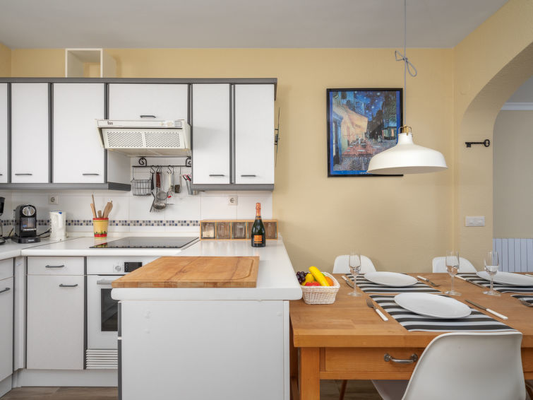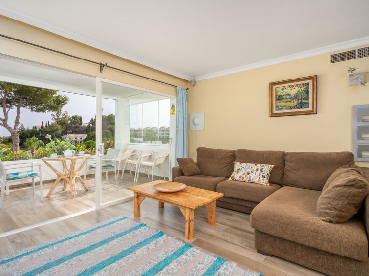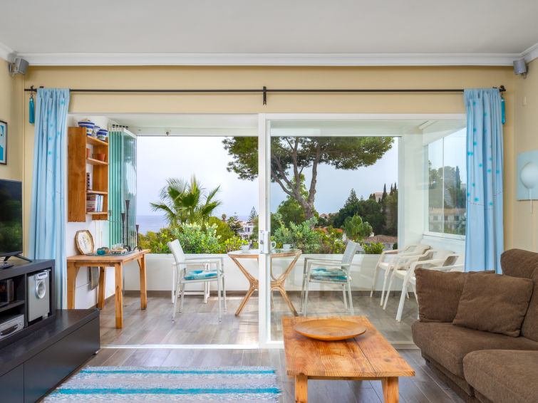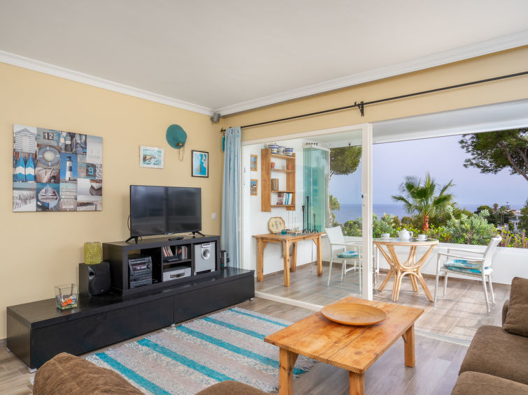 "Miraflores", appartement 3-kamers 67 m2 op de 1e verdieping. Doelmatig en comfortabel ingericht: woon-/eetkamer met Digitale TV. Uitgang naar het terras. 1 kamer met 1 2-pers bed. 1 kamer met 1 2-pers bed. Keuken (4-pits kookplaat, oven, diepvriezer). Bad/WC. Air-conditioning. Geen verwarmingsmogelijkheid. Terras 9 m2, overdekt. Terrasmeubelen. Uitzicht op zee. Ter beschikking: wasmachine, kinderstoel, kinderbed, haardroger. Internet (Internet (WiFi), gratis). Geschikt voor families. Geen lift. VUT/MA/41548