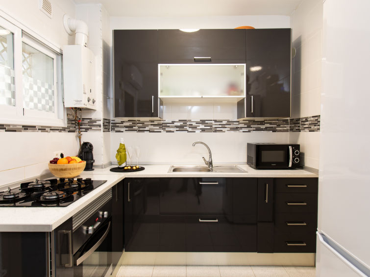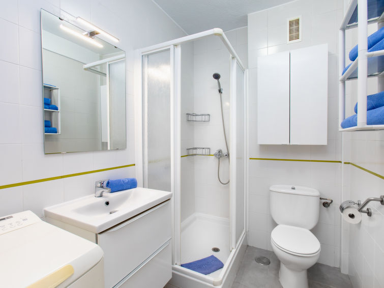 "Velilla", appartement 3-kamers 65 m2 op de 7e verdieping, op het zuiden gelegen. Licht, eenvoudig en doelmatig ingericht: woon-/eetkamer met Digitale TV. Uitgang naar het terras. 1 kamer met 2 bedden (90 cm, lengte 190 cm), ventilator. 1 kamer met 1 2-pers bed (180 cm, lengte 200 cm), ventilator. Open keuken in de hal (4-pits kookplaat, oven, broodrooster, waterkoker, magnetron, diepvriezer, elektrische koffiemachine, pads voor de koffiemachine (dolce gusto)) met air-conditioning en heteluchtverwarming. Douche/WC. Groot terras. Terrasmeubelen. Panoramazicht op zee en de plaats. Ter beschikking: wasmachine, strijkijzer, kinderstoel, kinderbed tot 2 jaar, haardroger. Internet (WiFi, gratis). VUT/GR/08390 // Reg. Nr.: ESFCTU0000180160000403580000000000000000VUT/GR/083906