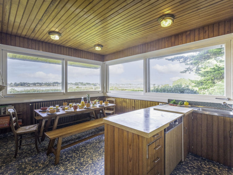 Villa "La Villa Tribale", van 2 verdiepingen. 10 m van zee, 150 m van het strand. Voor alleengebruik: park 2 ha (omheind). Tennisbaan (1 x hard court), parkeerplaats (voor 5 auto's). Supermarkt 3 km, restaurant 2 km, bar 2 km, bakkerij 2 km, café 2 km, zandstrand "Kernevest" 900 m. Jachthaven 1.5 km, golfterrein (18 holes) 12 km, zeilschool 900 m, wandelroutes 10 m vanaf het huis. Attracties in de buurt: La Trinité Sur Mer 2 km, Carnac et ses alignements 7 km, Presqu'île de Quiberon 15 km, Vannes 35 km, Belle ile en Mer, Houat, Hoedic. Wandelgebied Le Golfe du Morbihan 30 km.