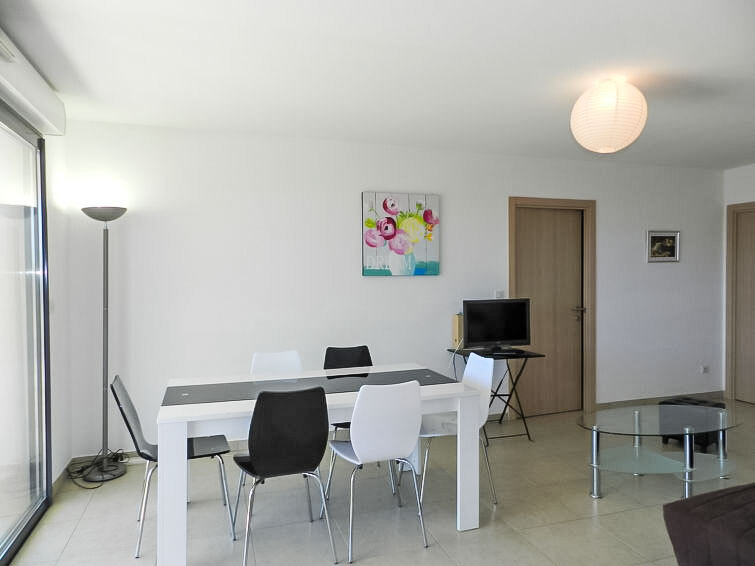 Appartement 4-kamers 84 m2 op de 1e verdieping. Ruim en licht, modern ingericht: woon-/eetkamer met TV, Flatscreen TV, DVD en air-conditioning. Uitgang naar het balkon. 2 kamers, elke kamer heeft 1 2-pers bed (1 x 140 cm, lengte 190 cm). 1 kamer met 2 bedden (90 cm, lengte 190 cm). Open keuken (2-pits kookplaat, oven, afwasmachine, magnetron, diepvriezer, elektrische koffiemachine). Uitgang naar het balkon. Badkamer, aparte WC. Elektrische verwarming. Groot balkon 15 m2. Balkonmeubilair, elektrische barbecue. Ter beschikking: wasmachine. Woning aan de straatzijde. 2B3030164608