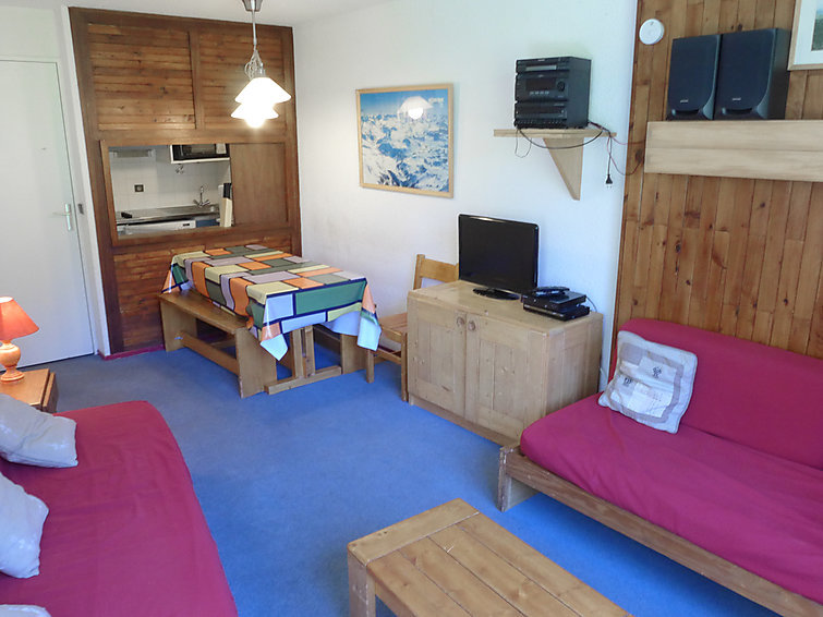 Appartement 2-kamers 40 m2 op de 2e verdieping. Woon-/eetkamer met (80 cm), 1 2-pers divanbed (160 cm, lengte 200 cm). Hal met 1 x 2 stapelbedden (80 cm), TV. 1 kamer met 1 2-pers bed (140 cm). Kookhoek (4-pits kookplaat, mini-oven, afwasmachine, magnetron). Badkamer, aparte WC. Balkon, op het zuiden gelegen. Zeer mooi uitzicht op de skipiste. Ter beschikking: Internet (Internet (WiFi), extra). Rookmelders.