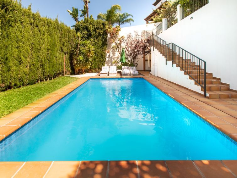 Torre de benagalbón: Mooi, gezellig huis "Surinam", van 3 verdiepingen, omgeven door bomen. In de plaats, 5 km van het centrum van Rincon de la victoria, in het district Rincon de la Victoria, rustige, zonnige ligging, 2 km van zee, 2 km van het strand, op het oosten. Voor alleengebruik: met gazon en planten, wilde tuin, openluchtzwembad hoekig (7 x 4 m, 50 - 200 cm diepte, seizoensgebonden beschikbaarheid: 01.Mrt. - 01.Dec.). Douche/WC bij het zwembad, onderhoud zwembad door de eigenaar/tuinman. In het huis: Internet (WiFi), air-conditioning, wasmachine. Parkeerplaats bij het huis. Winkel 3 km, supermarkt 3 km, restaurant 2 km, bakkerij 2 km, bushalte 5 km. Golfterrein (18 holes) 1 km. Auto noodzakelijk. De eigenaar accepteert geen jeugdgroepen. De sleuteloverdracht vindt plaats bij het agentschap imoswiss.