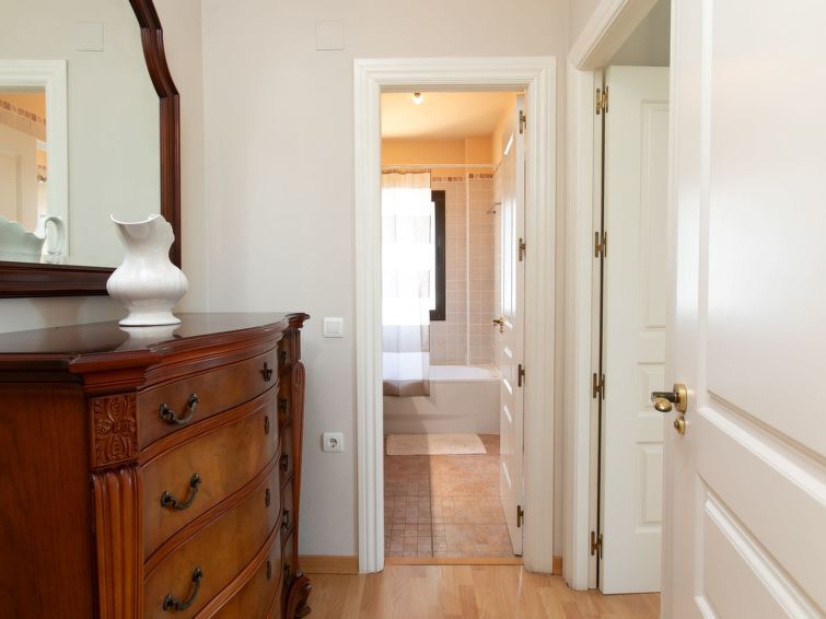 "Surinam", huis 6-kamers 250 m2, op het oosten gelegen. Eenvoudig en comfortabel ingericht: woonkamer met Digitale TV. Uitgang naar het terras. Woonkeuken (oven, afwasmachine, 3 keramische glas kookplaten, broodrooster, waterkoker, magnetron, diepvriezer, elektrische koffiemachine). Aparte WC. Boiler (80 liter). Souterrain: 1 kamer met 1 bed (90 cm, lengte 190 cm). 1 kamer met 4 bedden (90 cm, lengte 190 cm). Douche/WC. Bovenverdieping: 1 kamer met 1 2-pers bed (1 x 150 cm, lengte 200 cm), bad/WC. Uitgang naar het terras. 1 kamer met 1 bed (90 cm, lengte 190 cm). 1 kamer met 2 bedden (90 cm, lengte 190 cm). Bad/WC. Zithoek in de tuin. Terrasmeubelen, barbecue, ligstoelen (2). Uitzicht op zee en de bergen. Ter beschikking: wasmachine, strijkijzer, haardroger. Internet (WiFi, gratis). Garage op het terrein. TV alleen ES. VUT/MA/83899