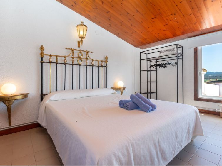 "Cataluña", halfvrijstaand huis 5-kamers 350 m2 op 2 verdiepingen. Ruim, doelmatig ingericht: woonkamer met Digitale TV. Uitgang naar de tuin, naar het zwembad. Eetkamer met eettafel. Keuken (oven, afwasmachine, 4 keramische glas kookplaten, broodrooster, waterkoker, magnetron, diepvriezer, elektrische koffiemachine) met eettafel. Uitgang naar de tuin, naar het zwembad. Bad/WC. Gas-verwarming. Bovenverdieping: met 1 uitschuifbaar bed (2 pers. 2 x 90 cm, lengte 190 cm). 1 2-pers. kamer met 1 2-pers bed (150 cm, lengte 190 cm), douche/bidet/WC. 1 2-pers. kamer met 1 2-pers bed (150 cm, lengte 190 cm). Bad/bidet/WC. 2e Verdieping: met afgeschuinde daken met 1 2-pers bed (150 cm, lengte 190 cm). Uitgang naar het terras. Terrasmeubelen, barbecue, ligstoelen. Uitzicht op de plaats. Ter beschikking: wasmachine, strijkijzer, kinderstoel, kinderbed tot 2 jaar, haardroger. Internet (WiFi, gratis). 2 kleine huisdieren/honden toegestaan. TV alleen ES. HUTG-058484 // Reg. Nr.: ESFCTU00001701800079771400000000000000000HUTG-0584844